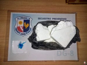Tras una requisa vehicular se les encontró 394,35 gramos de cocaína en forma compacta y pulverulenta. Los efectivos de Lucha Contra el Narcotráfico incautaron la sustancia, la cual es suficiente para elaborar 1.576 dosis, valuadas en $7.880.000.
