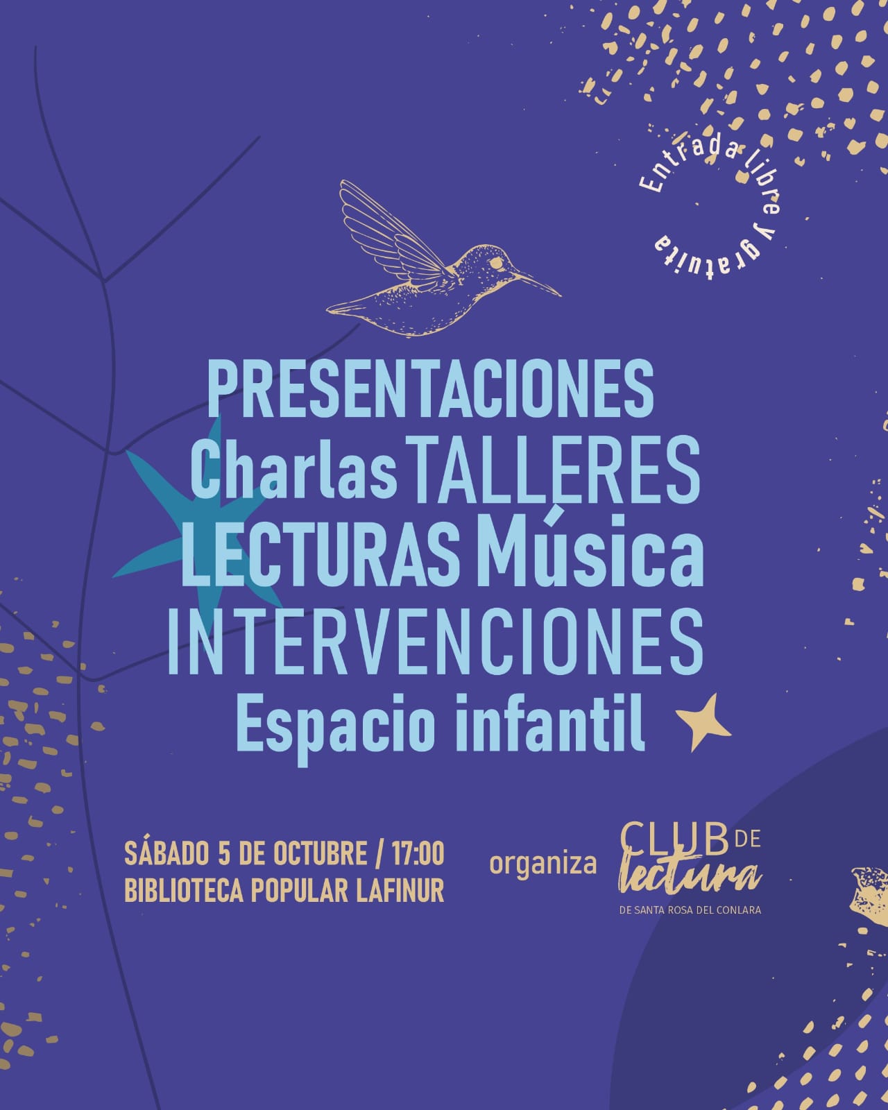 El evento tendrá lugar en la Biblioteca Popular Lafinur, y promete ser un espacio de encuentro entre escritores, artistas y el público, en un ambiente cultural y de intercambio.
