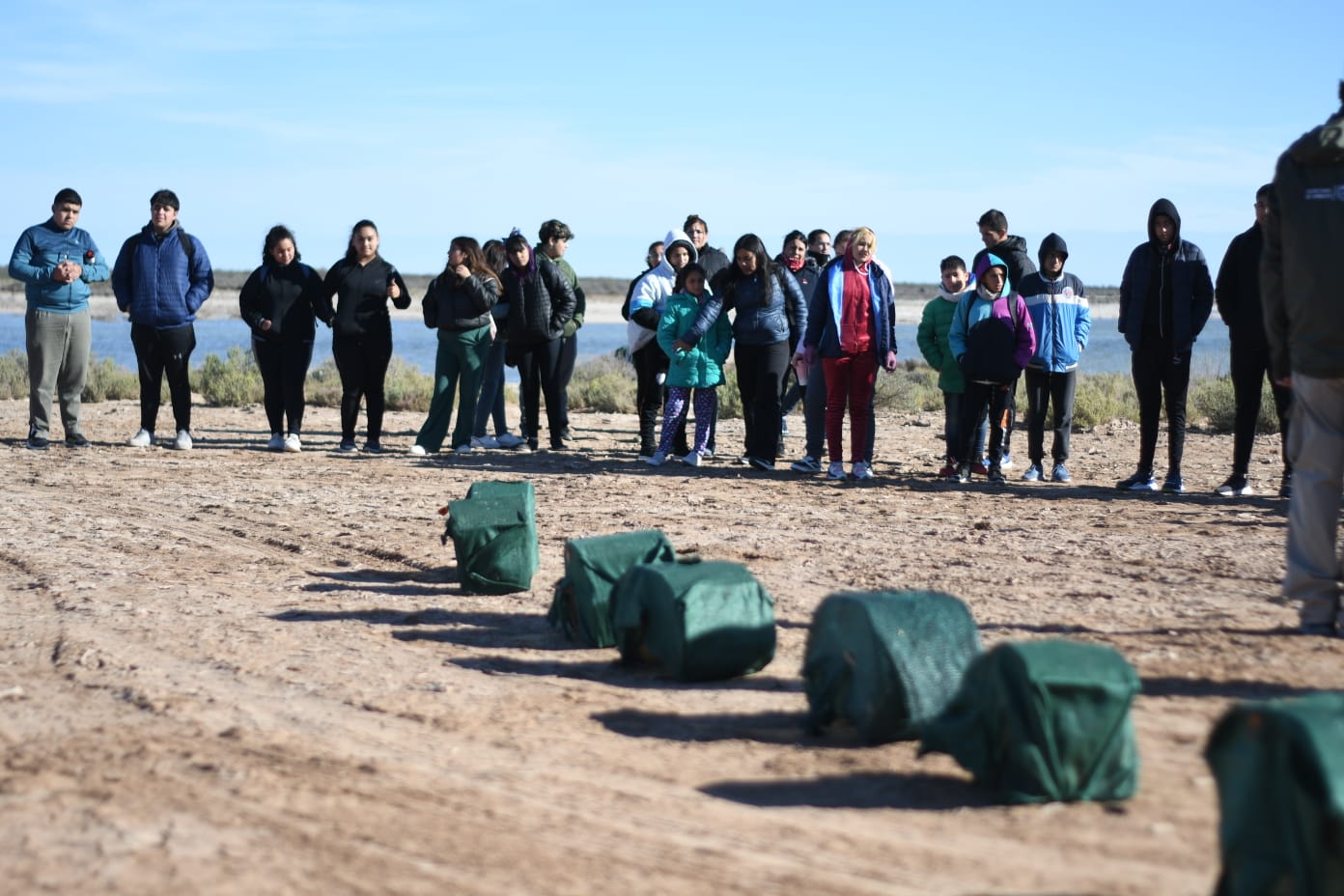 La actividad conjunta del ministerio de Energía y Ambiente de Mendoza y la secretaría de Ambiente y Desarrollo Sustentable de San Luis contó con la presencia de estudiantes y docentes de la Escuela 4-182 ‘Aída Font’, del departamento La Paz (Mendoza) y la Escuela Generativa Desaguadero (San Luis).