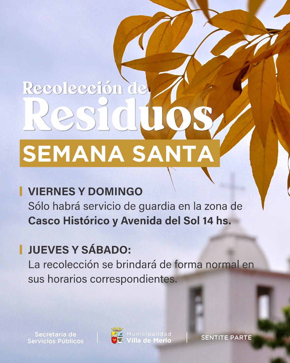 Cronograma especial de recolección de residuos por Semana Santa en Merlo