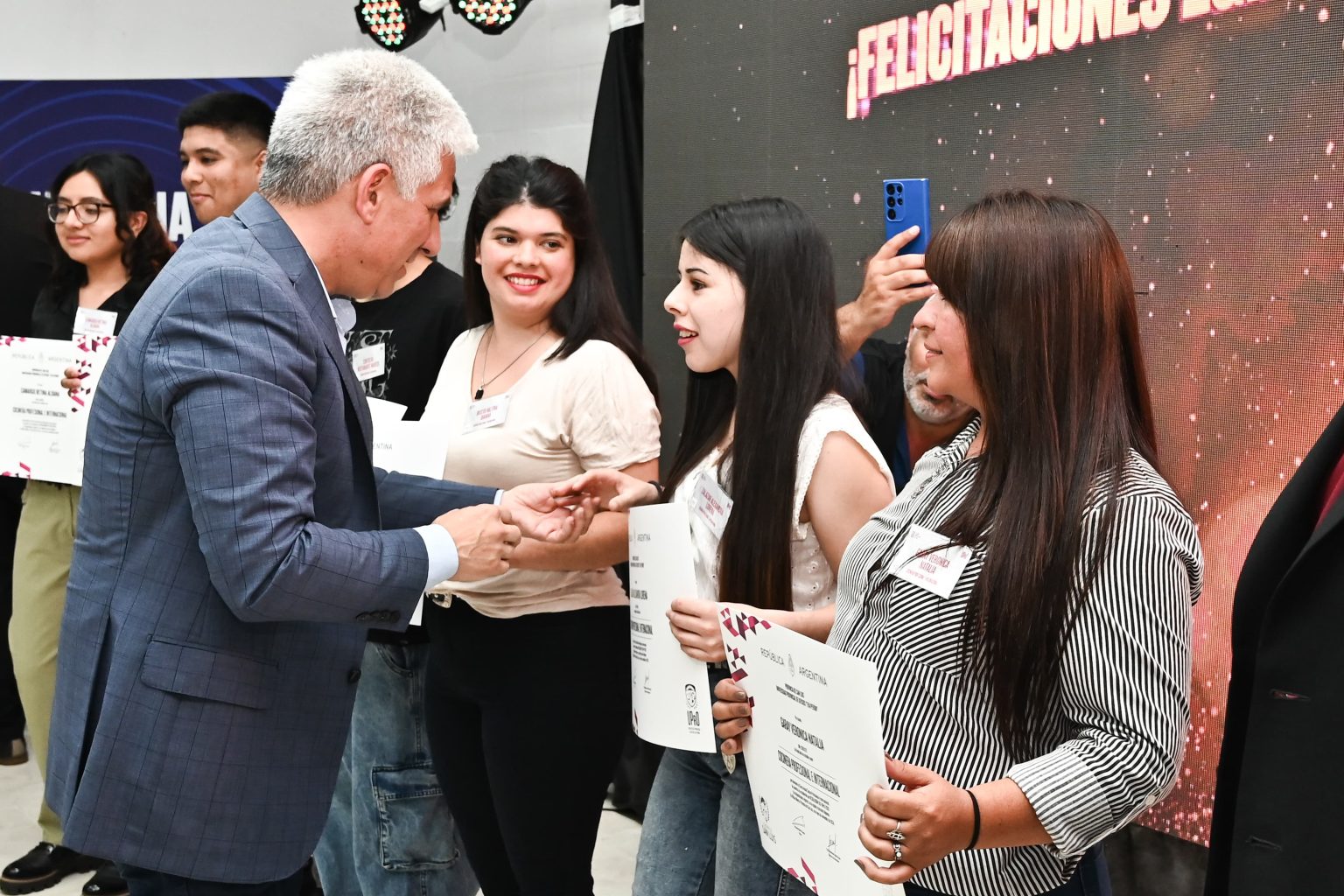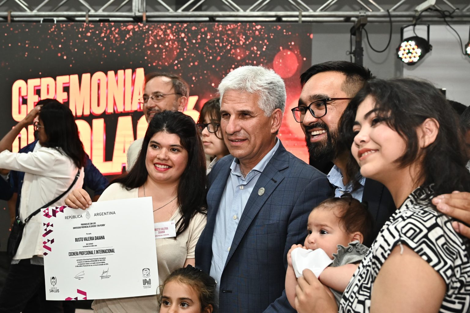 El gobernador Claudio Poggi encabezó el acto, junto con el rector de la Universidad, Rudy Cámera, y el intendente, Juan Álvarez Pinto. Los flamantes profesionales se graduaron en Cocina Profesional Internacional, Tapicero y Restaurador, Reparador de Equipos de Refrigeración y Electricista.
