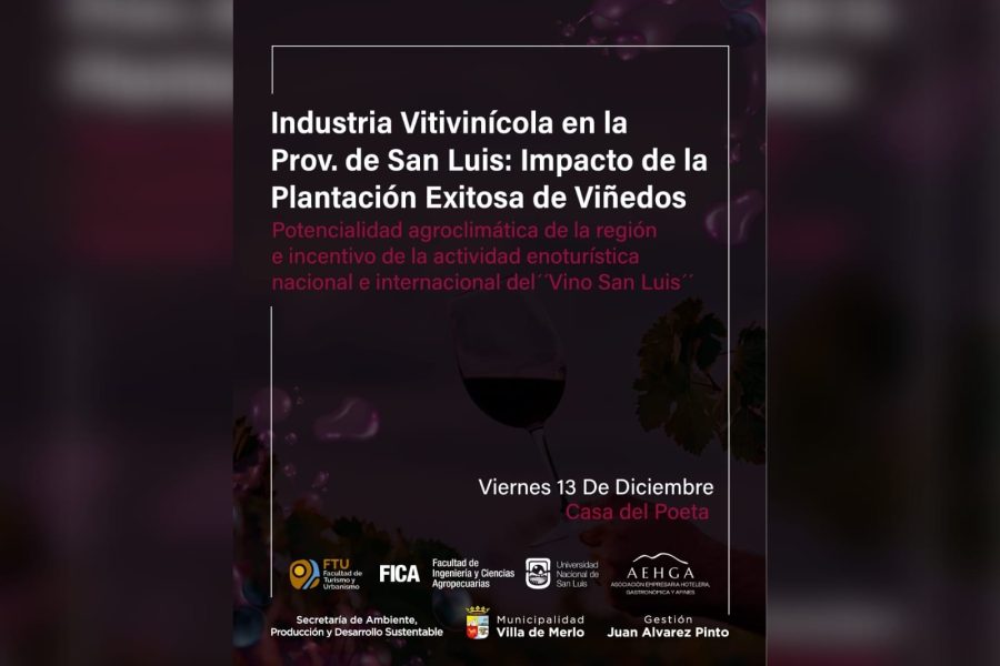 Este viernes 13, desde las 14:30, en la Casa del Poeta ‘Antonio Esteban Agüero’ de la Villa de Merlo, los apasionados por el enoturismo y la vitivinicultura se reunirán en una conferencia sobre la “Industria Vitivinícola en la Provincia de San Luis”. La actividad ofrecerá una oportunidad para descubrir los secretos detrás del éxito de los primeros viñedos de la región, conocer el potencial agroclimático que distingue a San Luis y explorar las oportunidades del enoturismo tanto a nivel nacional como internacional.