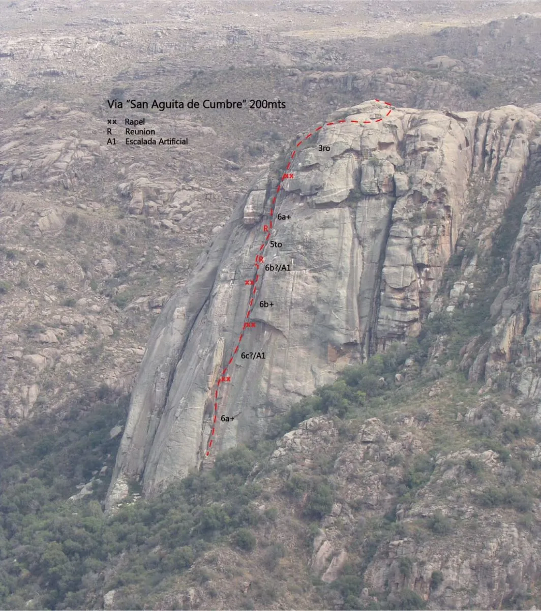 Los escaladores Galileo Addamo, Marcos Deltetto, Francisco Silvestre y Bautista Silvestre, un equipo de la escuela de escalada "La Torre" con sede en el Club Casino de Villa de Merlo, desafiaron la imponente pared del Salto del Chispiadero, en Las Chacras, alcanzando una altura de 200 metros en una nueva vía que bautizaron con un curioso nombre que resume su vivencia: "San Agüita de la Cumbre”.