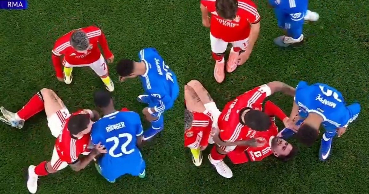 El delantero del Real Madrid reclamó la aplicación del protocolo porque supuestamente el argentino lo injurió tras el gol del 1 a 0 al Benfica. También se metió Otamendi y discutió con Mbapp...